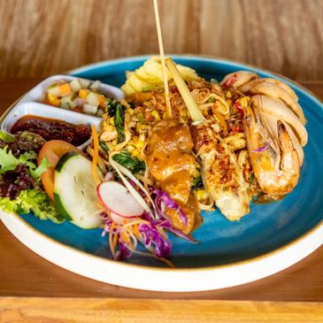 We serve Indonesian and Balinese dishes as well as Burgers, Pizza, Salads and Bowls. For our little guests, we have a big KidzMenu and special food for toddlers with no extra salt added.